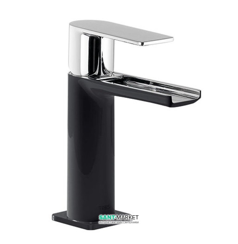 1) Змішувач для раковини Tres Loft colors змішувач з відкритим каскадним виливом чорний / хром