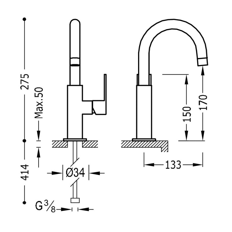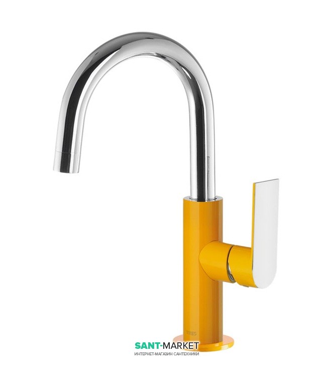 1) Змішувач для раковини Tres Loft colors змішувач з поворотним виливом янтарно-жовтий / хром