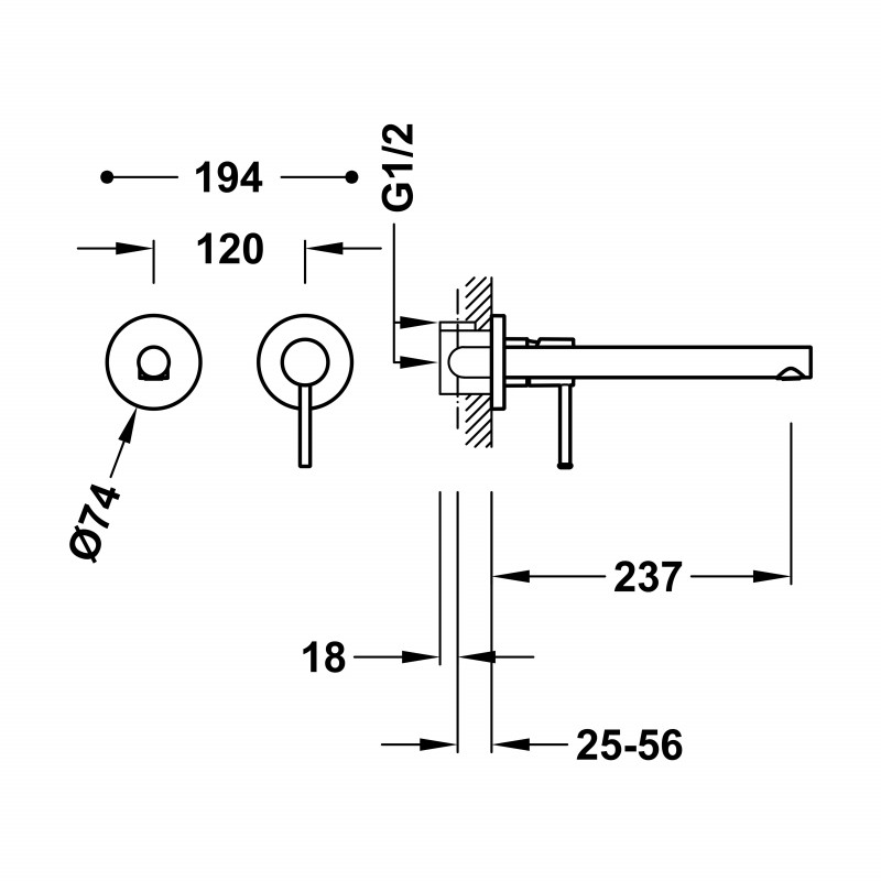 1) Змішувач для раковини Tres Max-Tres настінний одноважільний хром