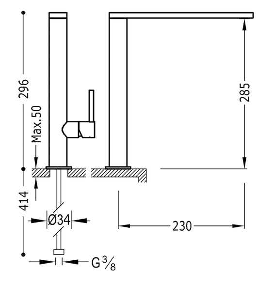 - ЕКОНОМІЯ ВОДИ Два положеннявідкриття рукоятки. У проміжному становищі споживання води знижується вдвічі