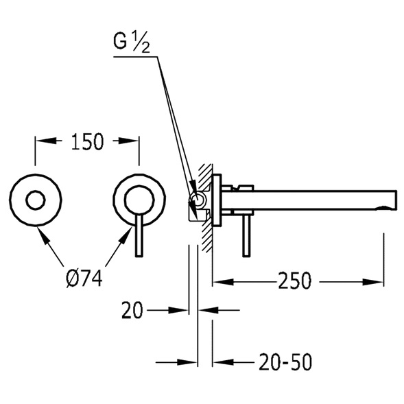 1) Змішувач для раковини Tres Max-Tres змішувач настінний хром