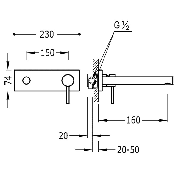 - Одноважільний настінний змішувач