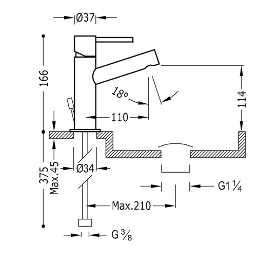 1) Змішувач для раковини Tres Max-Tres з донним клапаном хром