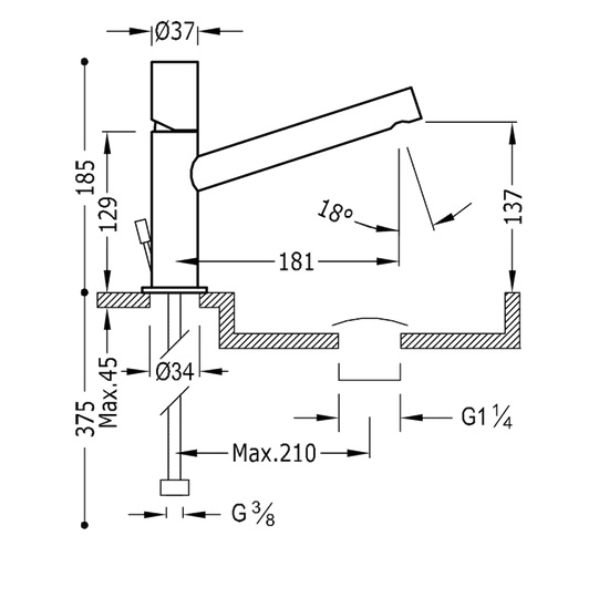 - Підведення: G ⅜