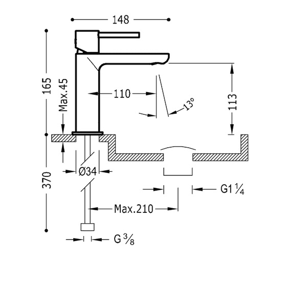 1) Змішувач для раковини Tres Max-Tres з донним клапаном хром