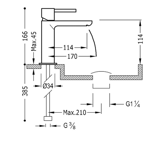 1) Змішувач для раковини Tres Max-Tres з каскадним виливом та донним клапаном хром