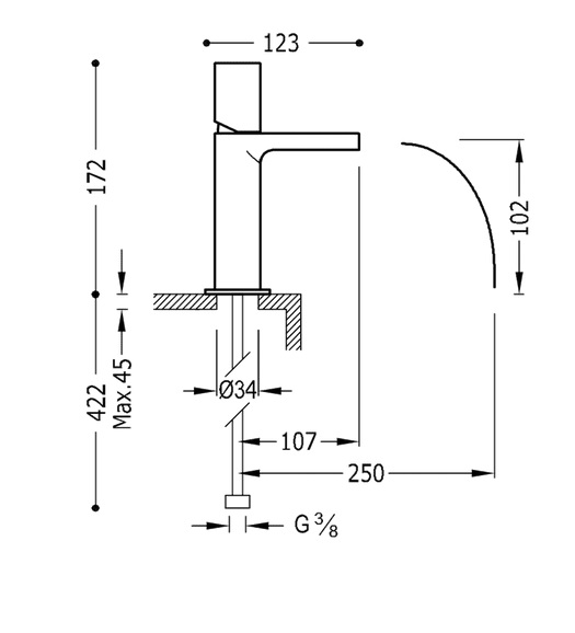 Змішувач для раковини Tres Max-Tres з відкритим каскадним виливом хром 06111001