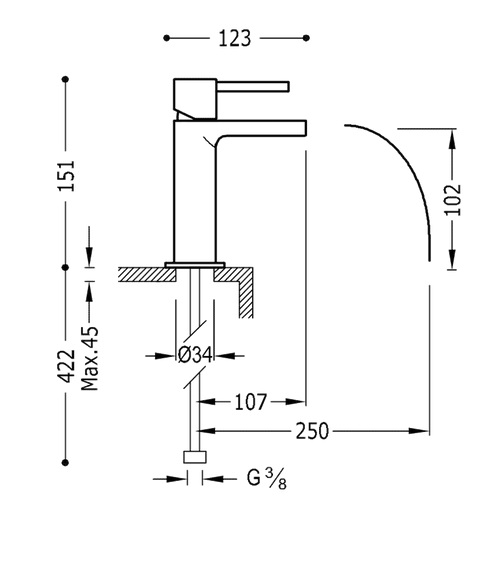- Довжина виливу: 107 мм