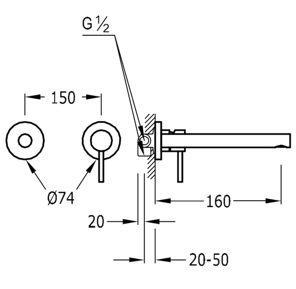 - Одноважільний настінний змішувач