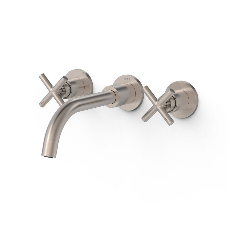Змішувач для раковини Tres Mont Blanc двовентильний настінний сталь 28330002AC