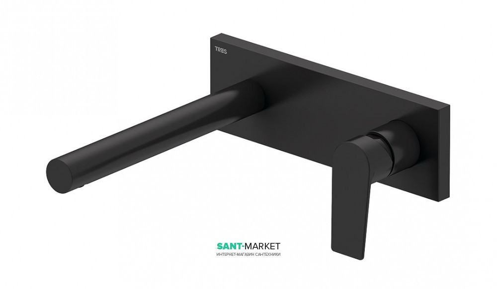 1) Змішувач для раковини Tres Project colors настінний виливши 213 мм чорний матовий