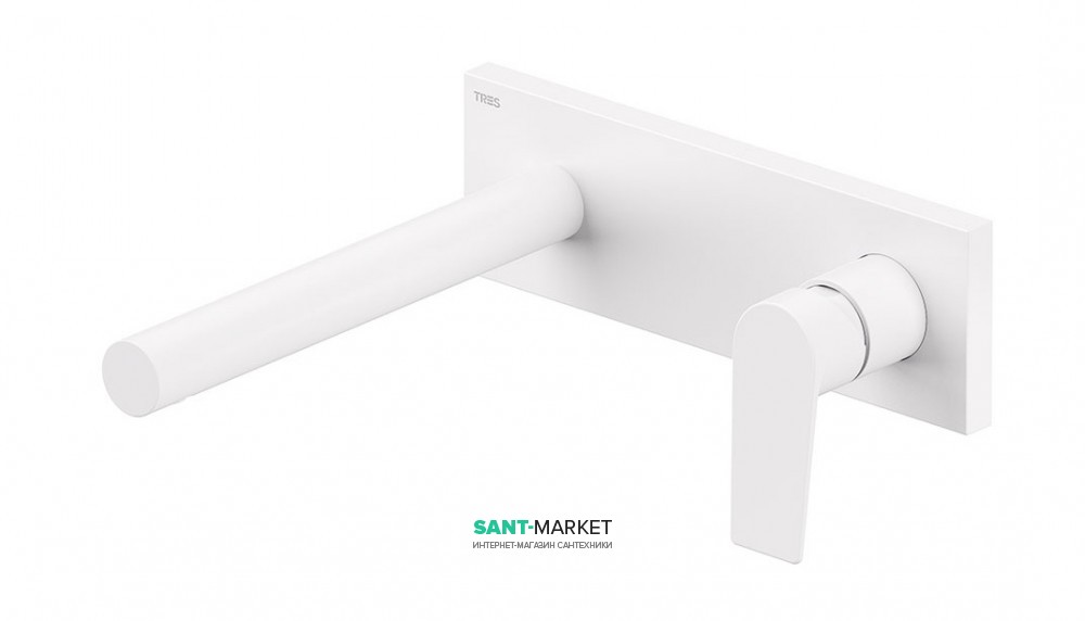 1) Змішувач для раковини Tres Project colors настінний виливши 213 мм білий матовий