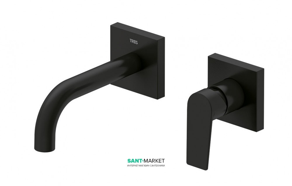 1) Змішувач для раковини Tres Project-Tres настінний виливши 170 мм чорний матовий