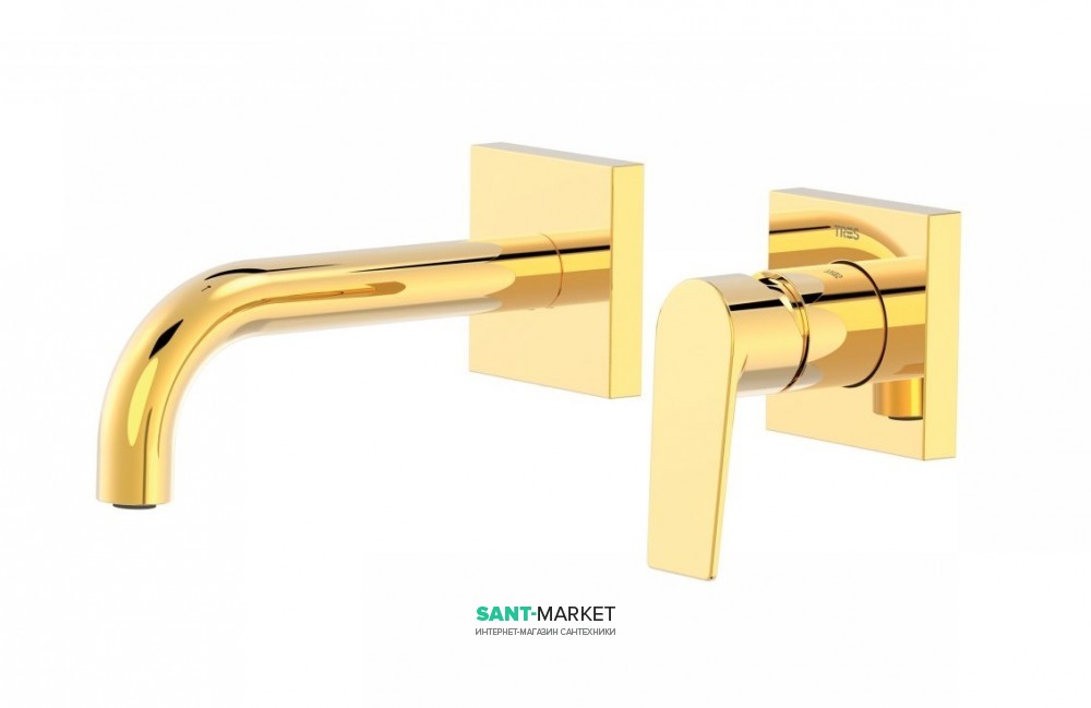 1) Змішувач для раковини Tres Project-Tres настінний виливши 170 мм золото