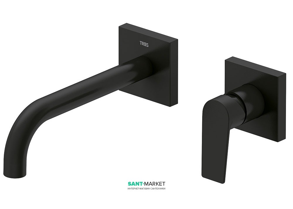 1) Змішувач для раковини Tres Project-Tres настінний виливши 220 мм чорний матовий