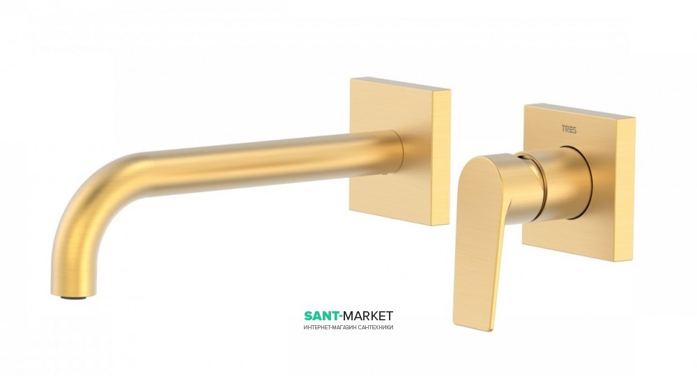 1) Змішувач для раковини Tres Project-Tres настінний виливши 220 мм золото матовий