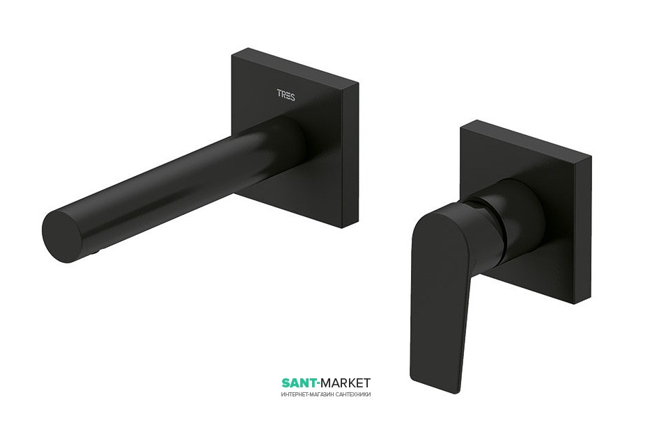 1) Змішувач для раковини Tres Project-Tres настінний виливши 163 мм чорний матовий