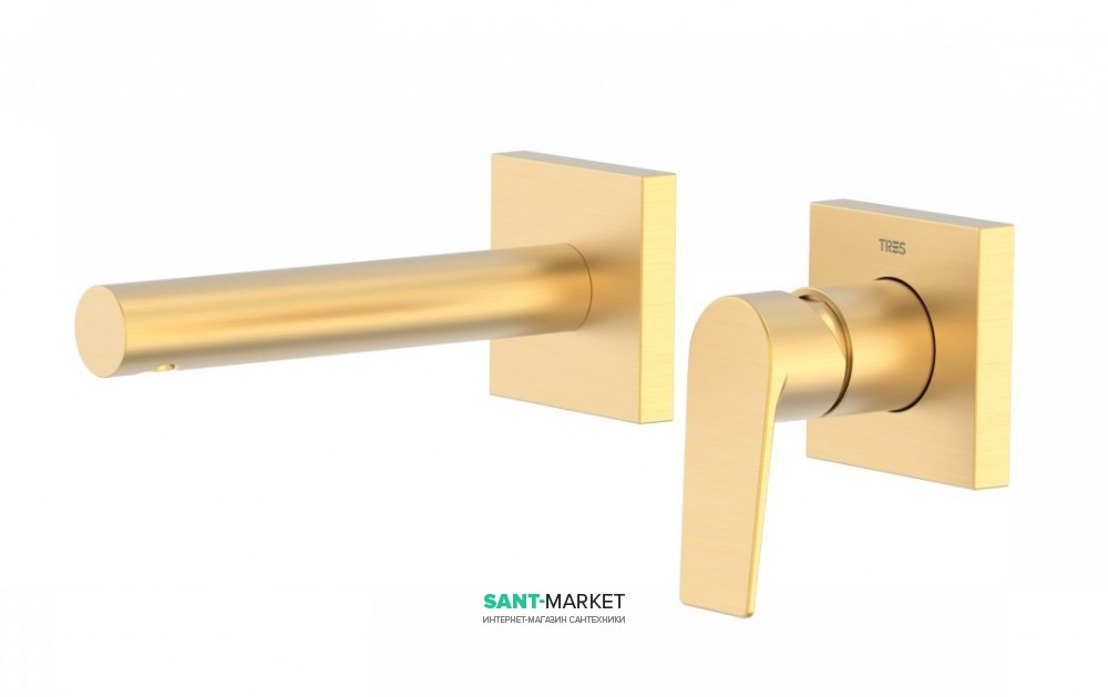 1) Змішувач для раковини Tres Project-Tres настінний виливши 163 мм золото матовий