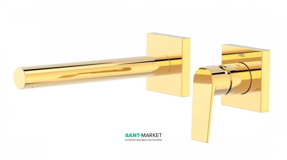 1) Змішувач для раковини Tres Project colors настінний виливши 213 мм золото