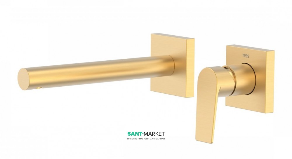 1) Змішувач для раковини Tres Project colors настінний виливши 213 мм золото матовий