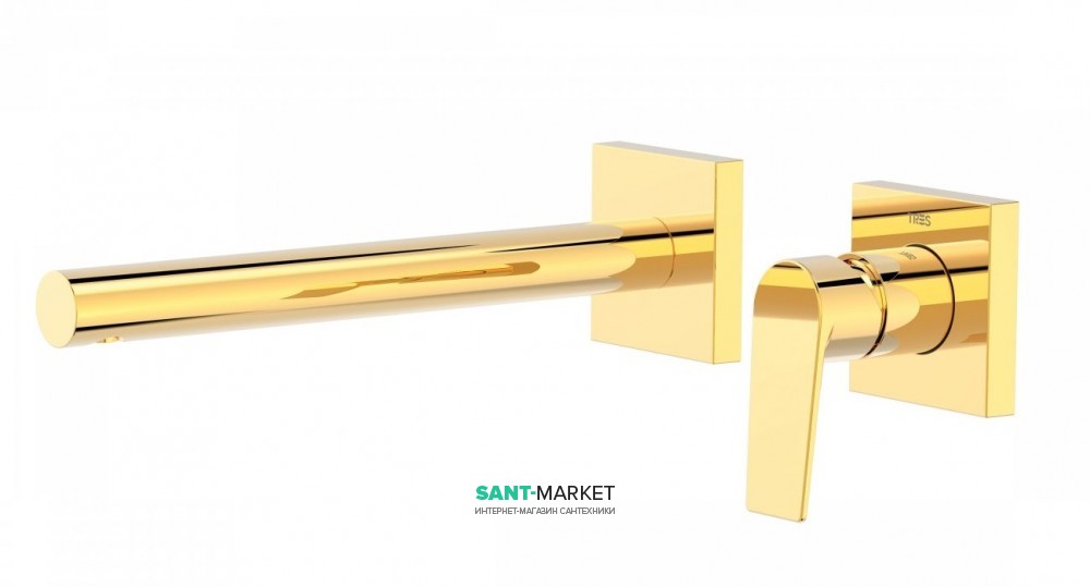 1) Змішувач для раковини Tres Project-Tres настінний виливши 253 мм золото