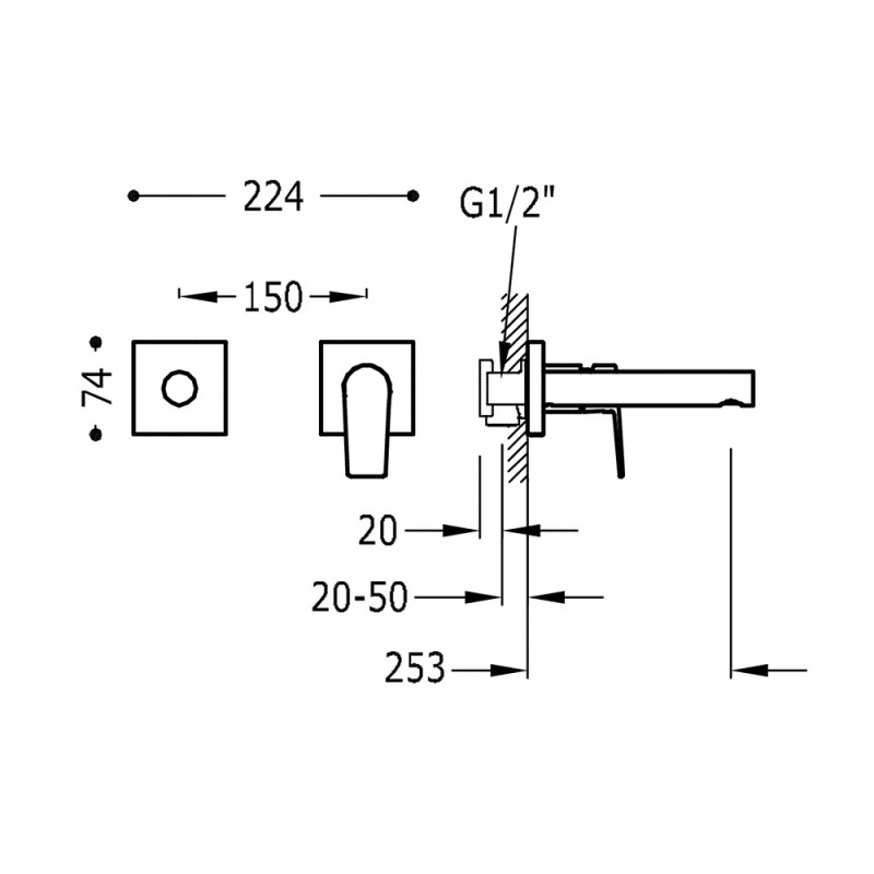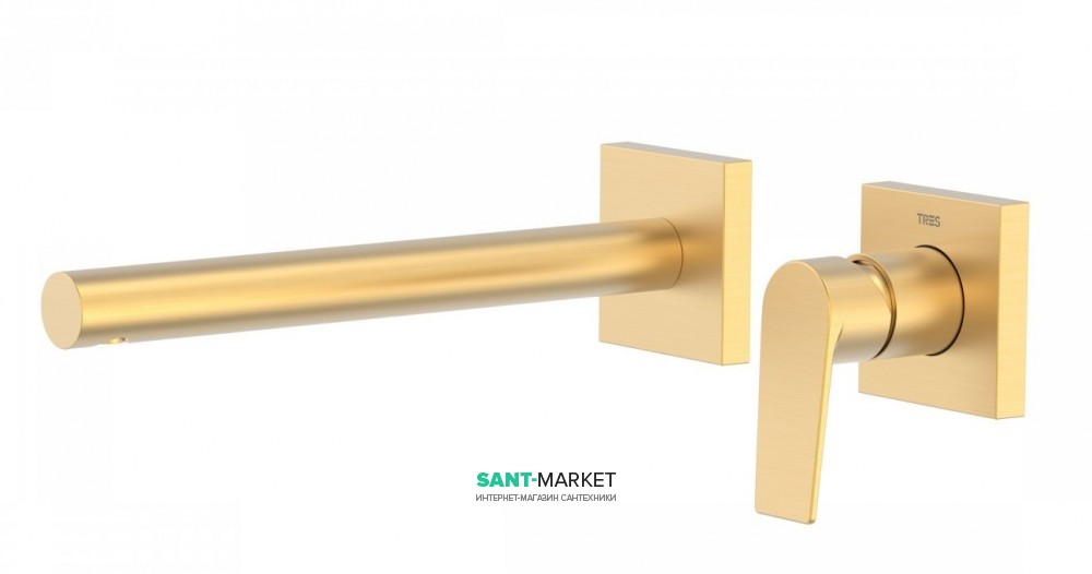 1) Змішувач для раковини Tres Project-Tres настінний виливши 253 мм золото матовий
