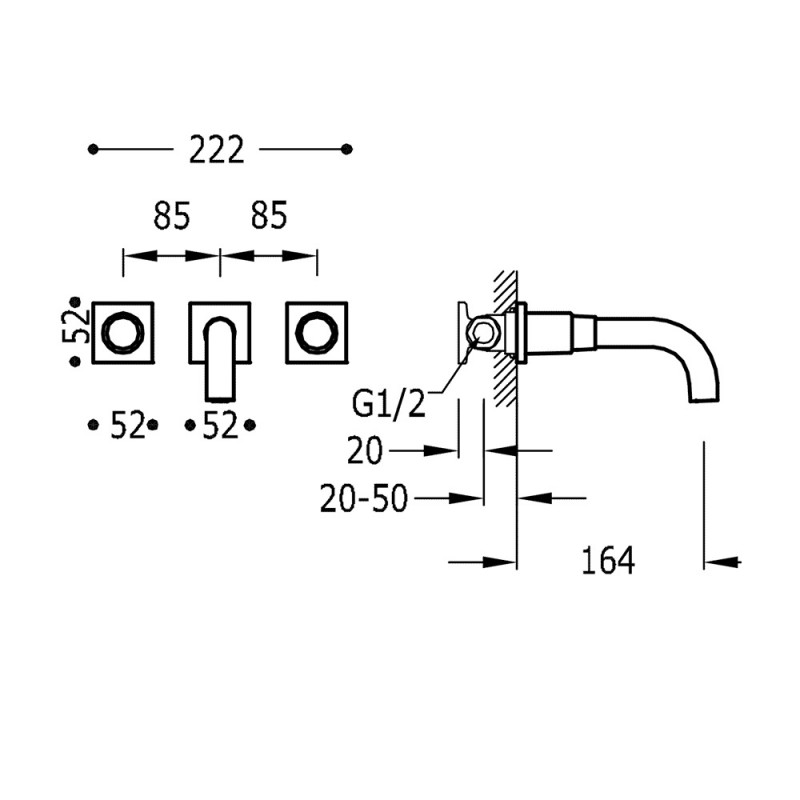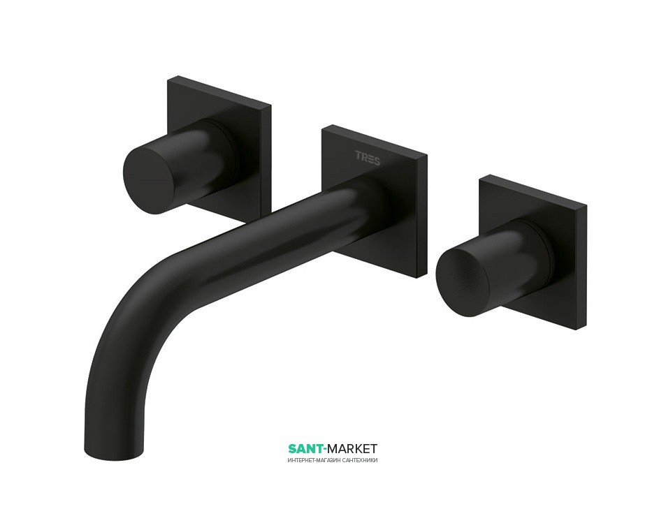 Змішувач для раковини Tres Project-Tres настінний двухвентильний виливши 164 мм чорний матовий
