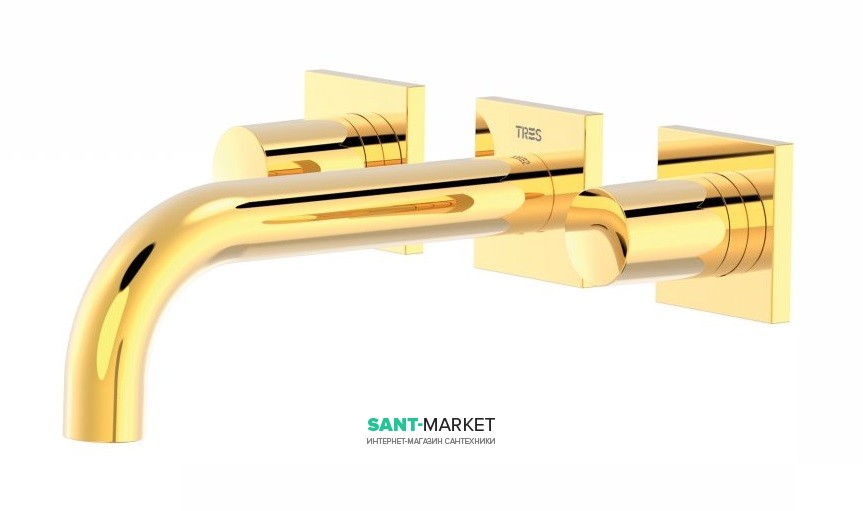 1) Змішувач для раковини Tres Project colors настінний двухвентильний виливши 164 мм золото