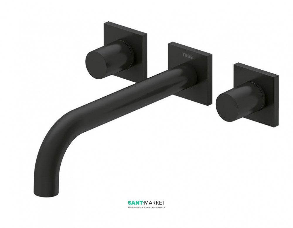 1) Змішувач для раковини Tres Project colors настінний двухвентильний виливши 214 мм чорний матовий
