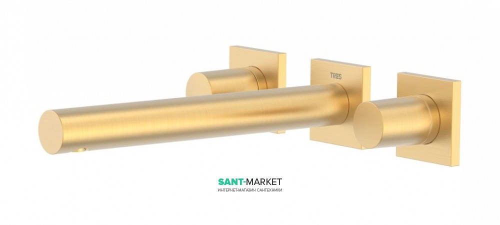 1) Змішувач для раковини Tres Project colors настінний двухвентильний виливши 206 мм золото матовий