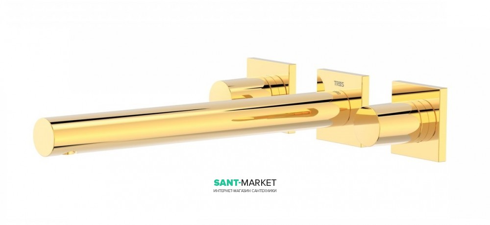 Змішувач для раковини Tres Project colors настінний двухвентильний виливши 247 мм золото