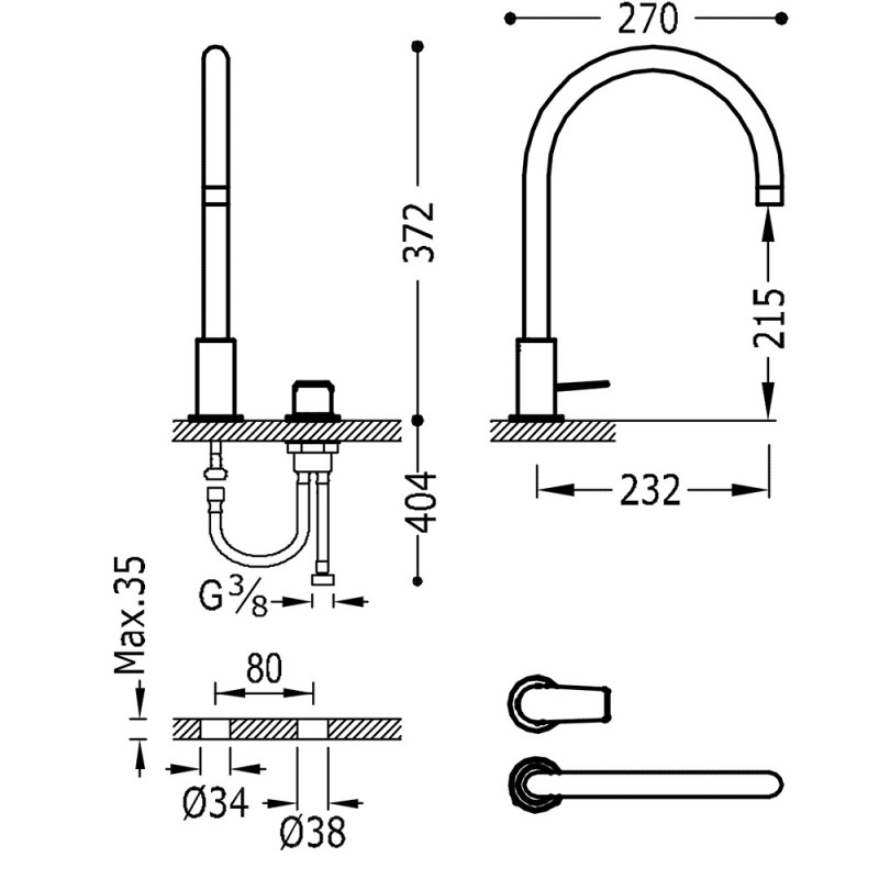 1) Змішувач для раковини Tres Project-Tres змішувач з поворотним виливом чорний метал