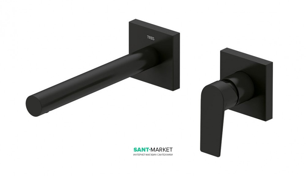 1) Змішувач для раковини Tres Project colors настінний виливши 213 мм чорний матовий