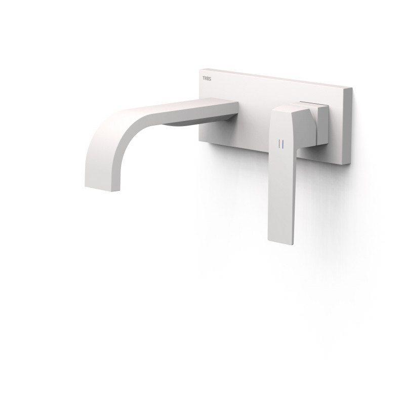 1) Змішувач для раковини Tres Slim Exclusive настінний одноважільний білий матовий