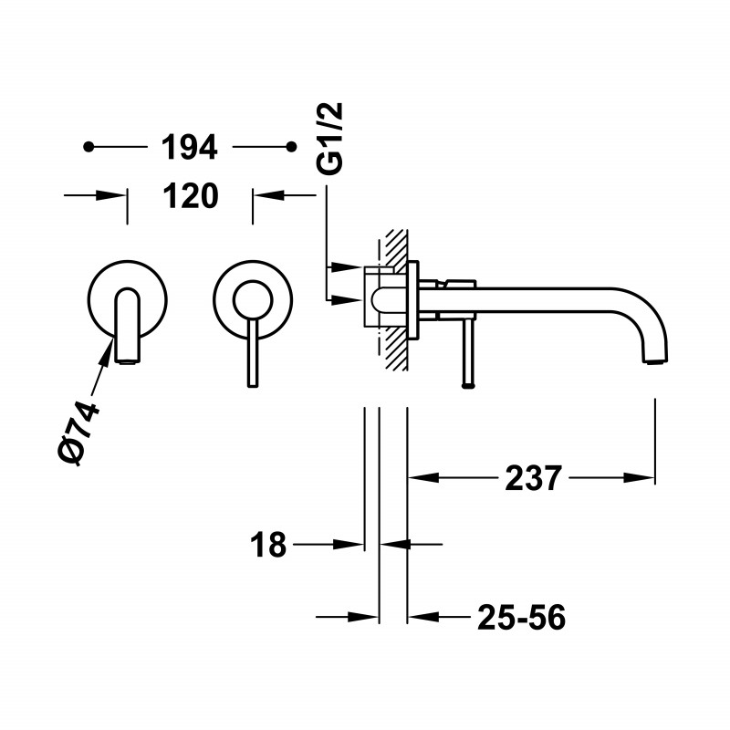 Study Exclusive Одноважільний настінний змішувач для умивальника