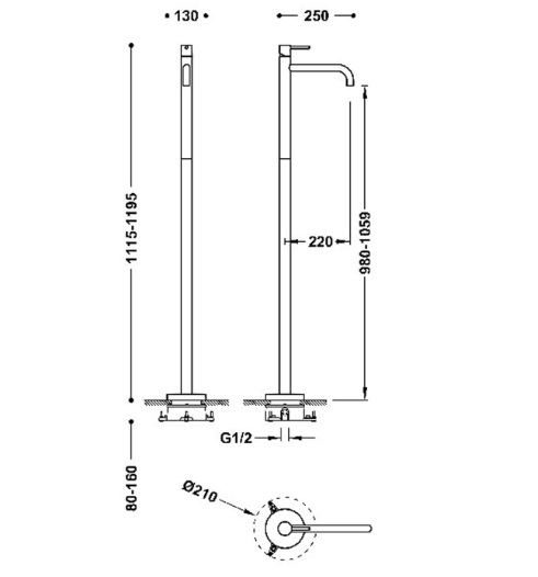 підлоговий змішувач - без донного клапана