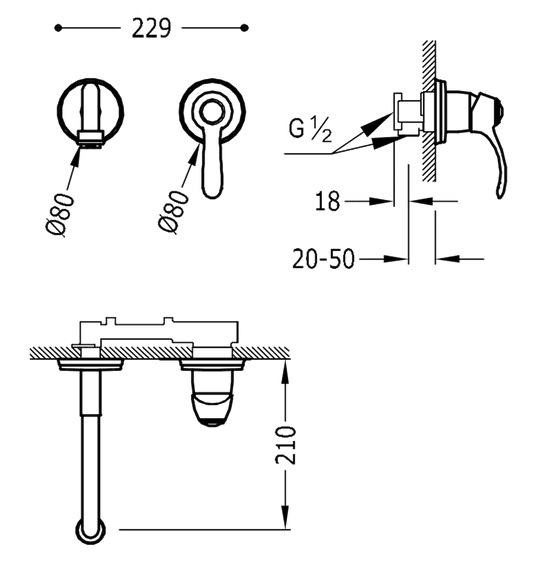 - Довжина виливу: 210 мм