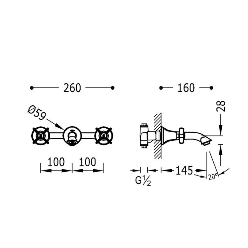 1) Змішувач для раковини Tres Tres-Сlasic двухвентильний сталь