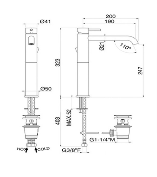 1) Змішувач для раковини Vema Maira з донним клапаном чорний матовий