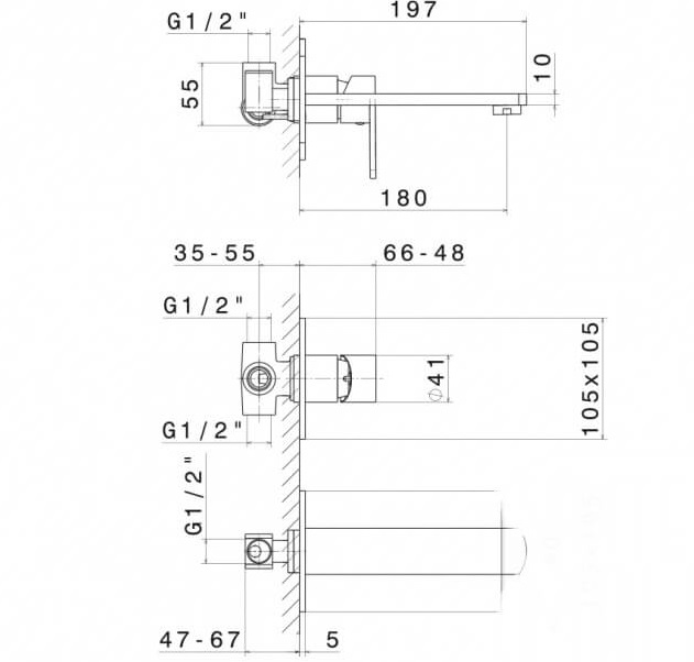 1) Змішувач для раковини Vema Plavis настінний змішувач хром