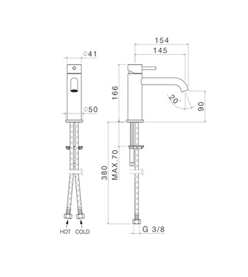 - Довжина гнучкого підведення: 380 мм