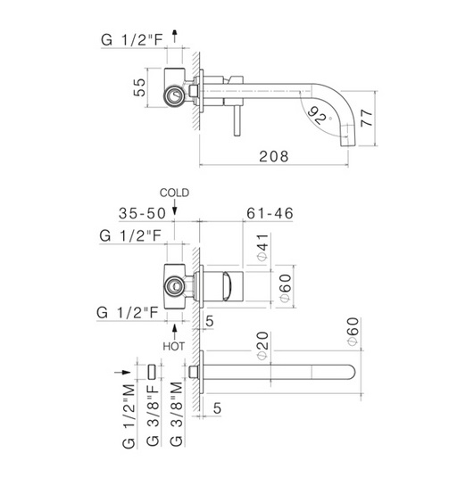 - Довжина виливу: 208 мм