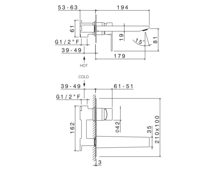 1) Змішувач для раковини Vema Timea настінний змішувач чорний матовий