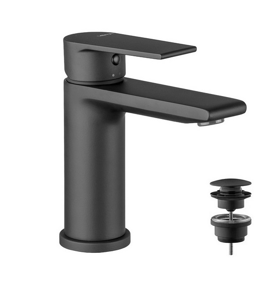 Змішувач для раковини Vema Timea з донним клапаном чорний матовий V16010F0202