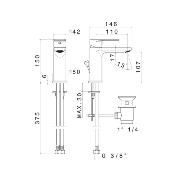 1) Змішувач для раковини Vema Timea з донним клапаном чорний матовий