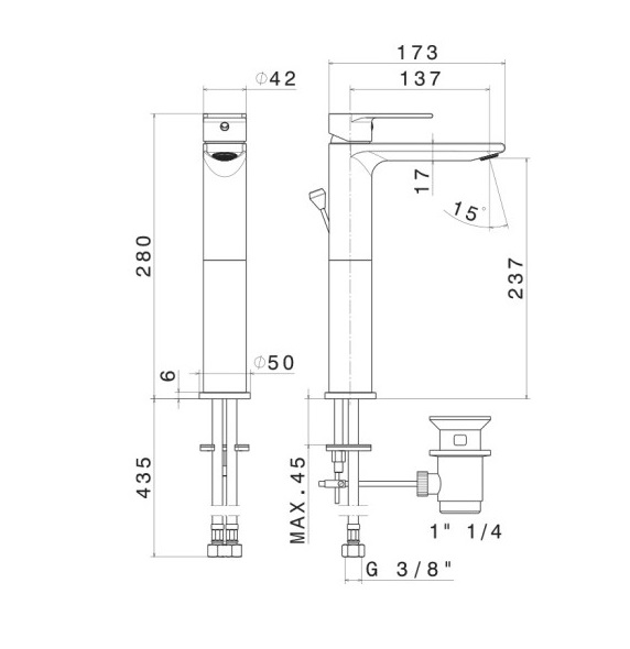 1) Змішувач для раковини Vema Timea з донним клапаном чорний матовий