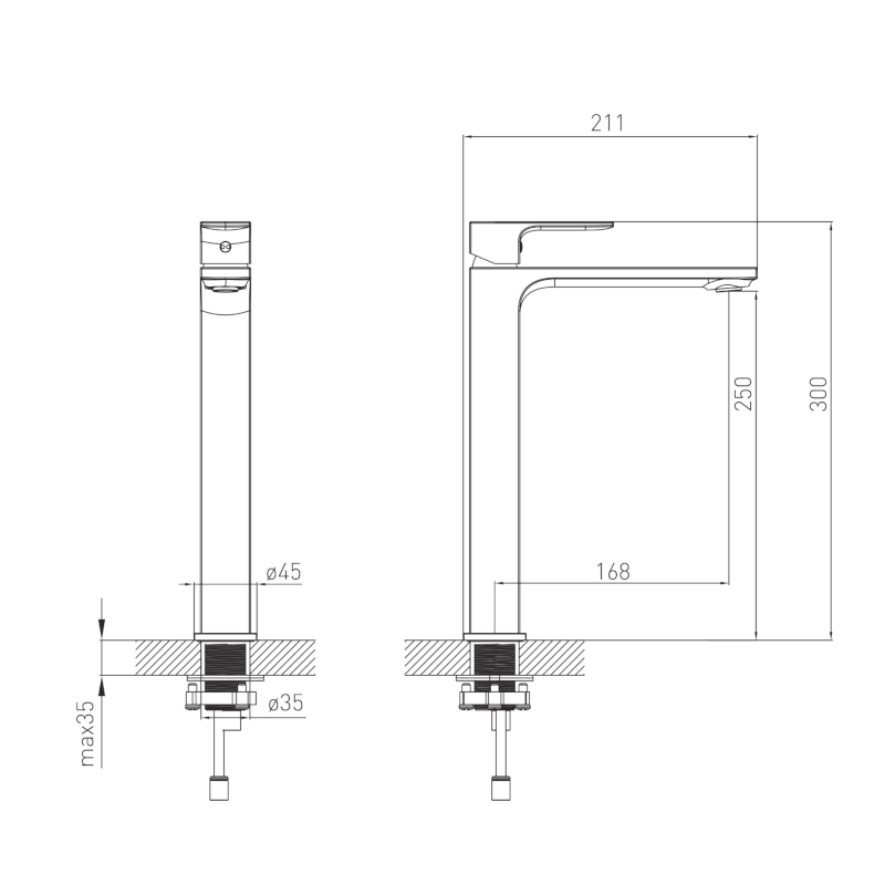 Виразний, змішувач змішувач для раковини De la Noche 10-40-1100 від Volle виготовлений з латуні з покриттям чорного кольору, має стаціонарний виливши довжиною 13 см, і встановлюється на один отвір з підведенням води за допомогою гнучкого шлангового з'єднання під діаметр 1/2 ".