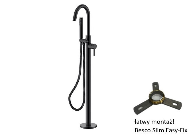 Змішувач для ванни Besco Veo II з душовим гарнітуром чорний матовий BW-VII-CZ