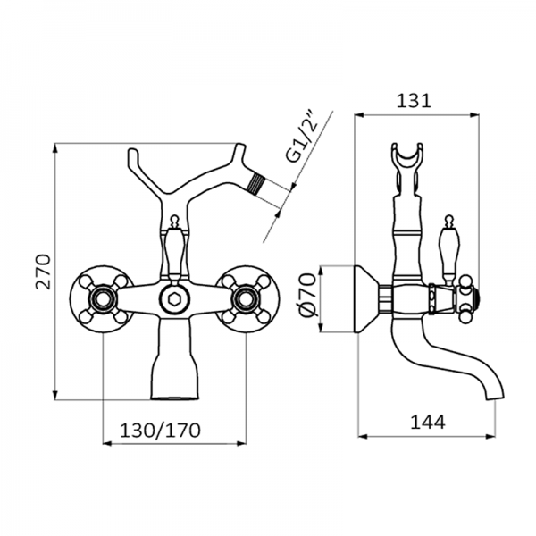 Змішувач для ванни GRB Clasica 1866 з душовою лійкою двухвентильний чорний 206120