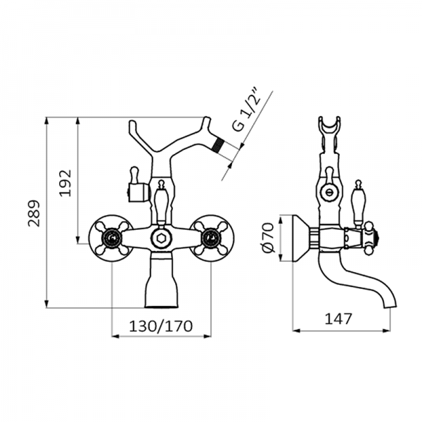 Змішувач для ванни GRB Clasica 1866 з душовою лійкою двухвентильний состаренная латунь 209199